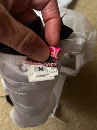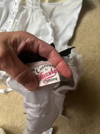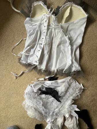 Corset with garter belts, ruffled panties, high socks, with bows, bunny ears, pin on tail See photos