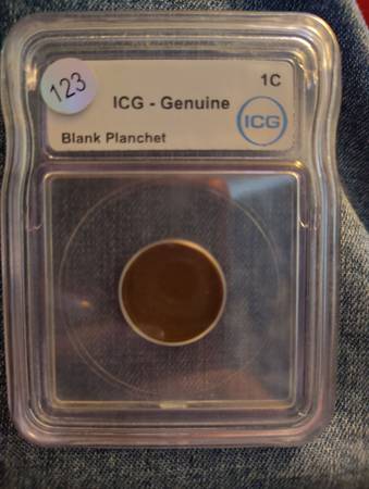 I have a certified copper blank planchet for sale. It weighs 3.1g and is of the red copper persuasion. This planchet has been stamped with a rim, but missed the press for the remaining images. The price is firm. I will ship at your expense. Venmo, Zelle, etc available as well with transfer fees added.