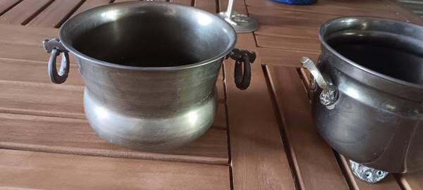 Not quite sure if these are spittons or just flower pots or what. they are both in good condition and show minimal signs of wear from age. both have handles on them and are 5 inches wide and 4...