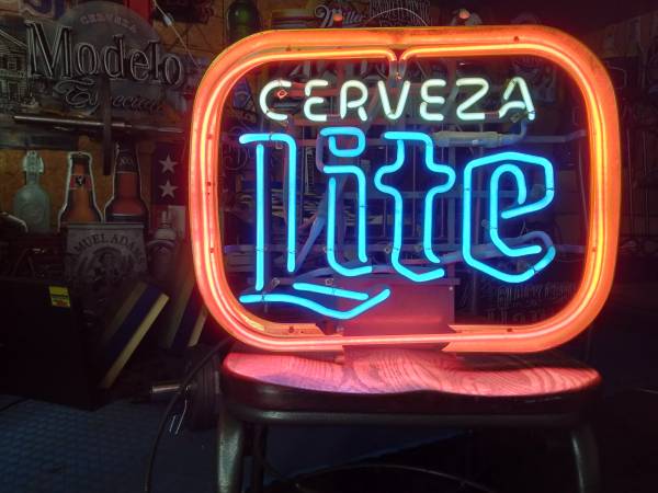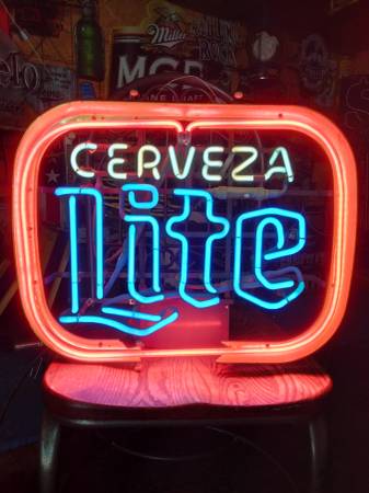 BY MILLERS. CERVEZA LIGHT FOR THE FAN DRINKER COLLECTOR MAN CAVE STORE BAR PUB CLUB SHOW/GAME ROOM HANG OR MOUNT ANYWHERE PULL STRING POWER 614-9ZERO2-7284