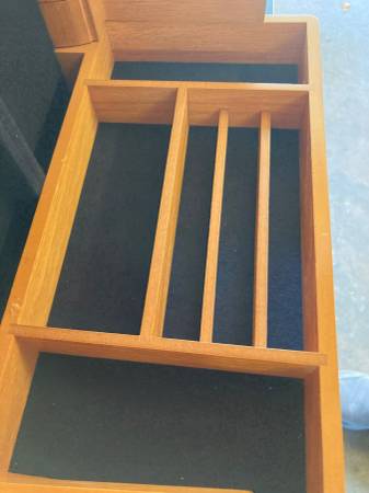 The next down opening drawers swing out allowing access to ring slits allowing for storage of up to 98 rings.