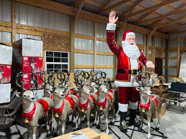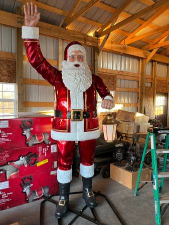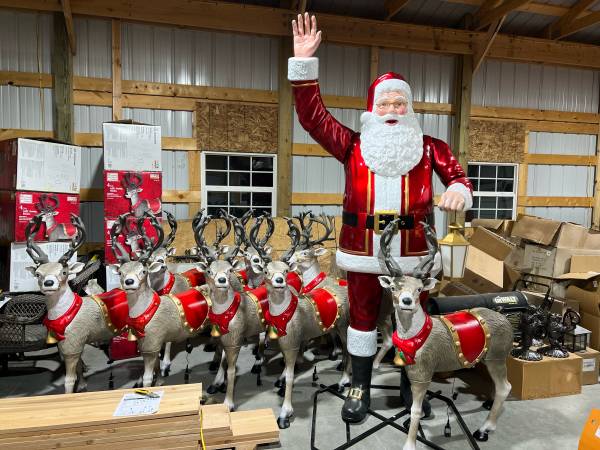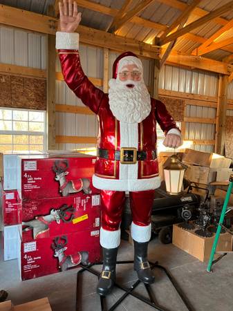 Santa Claus & 9 Reindeer Outdoor Display for Holiday Season. Like New Condition only Displayed 3 weeks one Christmas Season. Original boxes for all the Reindeers. Santa is 8.83’ Tall, 4’ Wide, 2’ Deep, Reindeers are 4’6” Long, 4’ Tall