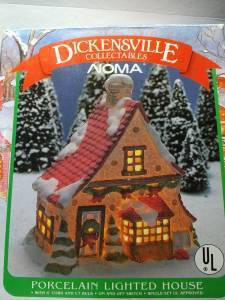 1993 Noma Dickensville Red Roof Porcelain Lighted Village House #6206 Christmas