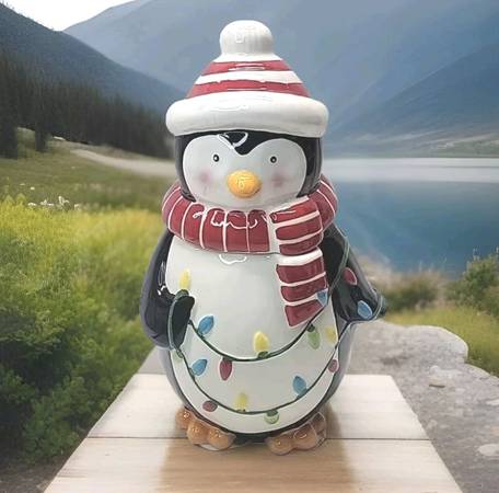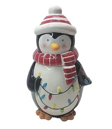 Cheryls Cookies - Penguin Christmas Ceramic Cookie Jar Canister 14"