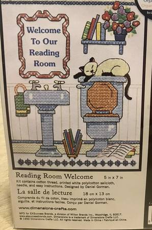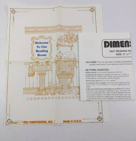 Vintage Dimensions Stamped Cross Stitch Kit Reading Room #6627 Welcome SEALED