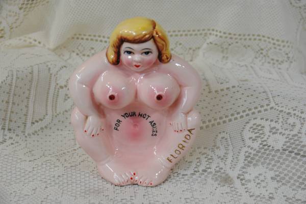 NOVELTY ASHTRAY Risque Rubenesque Lady Kitsch 1950s Ceramic Japan