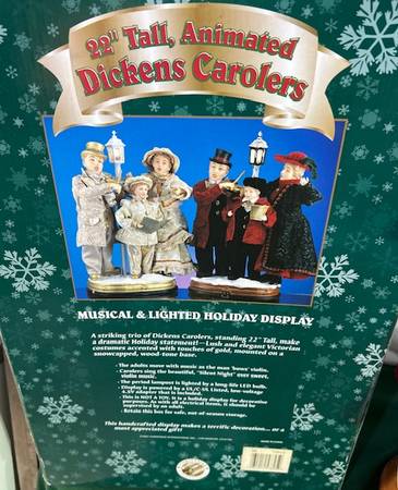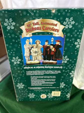 Vintage Dickens Carolers holiday display. Animated, musical and lighted. Large 22" tall. Works great!! I can send video if you ask. Comes with original box and power supply