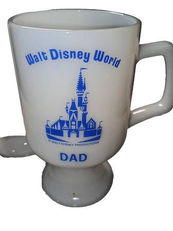 This vintage Walt Disney White Milk Glass Footed Souvenir Pedestal Mug is a collectible item perfect for fans