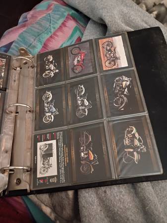 I have a book with 126 authentic Harley Davidson trading cards. I don't know anything about them, ask I know it's they are in perfect condition inside of plastic sleeves in a picture album type of...