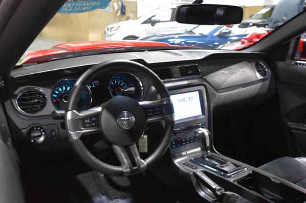Buckle up and get ready to feel the power of this fiery red 2014 Ford Mustang! This sleek machine is packing a 5.0L 4V Ti-VCT V8 engine under the hood, giving you the perfect combination of muscle and performance. With rear-wheel drive and a 3.31 axle ratio, you'll experience the thrill of the open road like never before.As you cruise down the street, you'll turn heads with the Mustang's bold and sporty design. The body-colored front bumper and rear bumper, along with the black side windows trim, give this Mustang a fierce and aggressive look. The LED brakelights and auto on/off projector beam headlights ensure that you'll see and be seen wherever you go.Step inside this beast and you'll find a comfortable and stylish interior waiting for you. The leather/aluminum steering wheel and front cupholder provide the perfect blend of luxury and convenience. The driver information center and trip computer keep you informed and in control at all times.Safety is a top priority in this Mustang, with features such as side impact beams, dual-stage driver and passenger front airbags, and low tire pressure warning. The airbag occupancy sensor and pretensioners on the front seat belts give you added peace of mind on every journey.But that's not all - this 2014 Ford Mustang comes with a Carfax report, so you can buy with confidence knowing the vehicle's history. Whether you're taking a leisurely drive through the countryside or tearing up the track, this Mustang is ready to deliver an unforgettable driving experience.So, what are you waiting for? Come test drive this stunning red Mustang today and let the thrill of the road take you on an adventure like no other. Unleash the power, style, and performance of the 2014 Ford Mustang - a true American classic that never goes out of style.