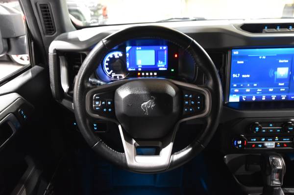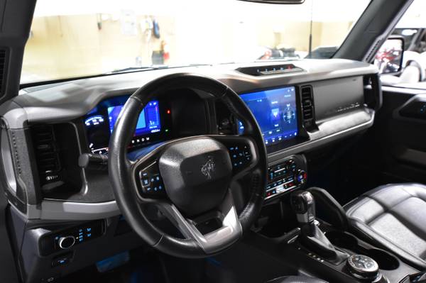 Buckle up and get ready for an adventure with this sleek 2023 Ford Bronco in a cool shade of grey that exudes confidence and style! With a powerful 2.3L EcoBoost I-4 engine under the hood, this Bronco is ready to take on any terrain with its Automatic Full-Time Four-Wheel Drive and Off-Road Suspension - perfect for those off-the-grid excursions or city cruises alike.Step inside this rugged beauty and you'll find yourself surrounded by modern technology and comfort. Stay connected on the go with the Streaming Audio and 2 LCD Monitors In the Front, while the Manual Tilt/Telescoping Steering Column and Cruise Control with Steering Wheel Controls make every drive a breeze. The spacious interior offers ample storage options, including Dashboard Storage, Driver/Passenger and Rear Door Bins, and Cargo Space Lights for all your gear and gadgets.Safety is a top priority in this Ford Bronco, featuring Side Impact Beams, Dual Stage Driver and Passenger Front Airbags, and a Safety Canopy System with Curtain Airbags for added peace of mind on the road. With Pre-Collision Assist with Pedestrian Detection and Rear Child Safety Locks, you can drive confidently knowing you're well-protected.This 2023 Ford Bronco comes with a detailed Carfax report, giving you full transparency and assurance of its quality and history. So, rev up the engine, feel the power at your fingertips, and get ready to turn heads wherever you go in this versatile and capable Bronco.Whether you're heading off on a weekend camping trip or navigating the urban jungle, this Ford Bronco is the perfect companion for all your adventures. So why wait? Come test drive this exciting SUV today and experience the thrill of driving a true American icon!