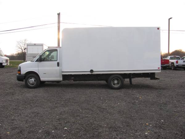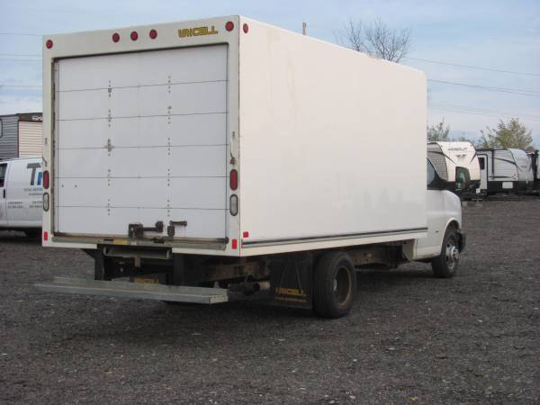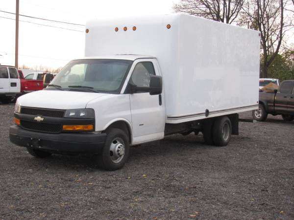 2018 CHEV. EX. 3500 CUTAWAY BOX, 159K MILES, 6.0, V-8, AUTO., TRANS., POWER STEERING , POWER BRAKES, A C, CRUISE CONTROL, 16' BOX, ALUM. RAMP, VINYL FLOOR, CLOTH SEATS, MANUAL WINDOWS, MANUAL LOCKS,...