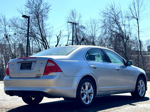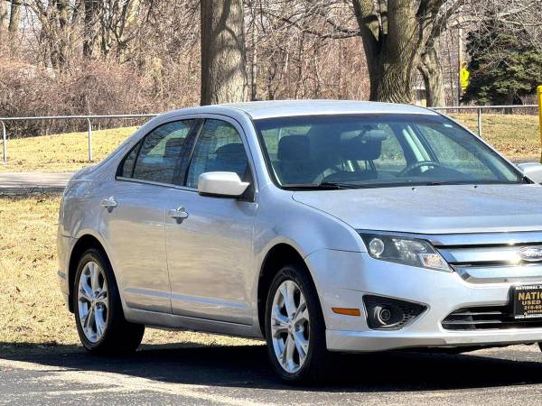 Hop into this sleek Silver 2012 Ford Fusion and experience a ride like no other! Safety is a top priority with built-in Child Safety Door Locks and a Trunk Anti-Trap Device, giving you peace of mind on the road. Power Door Locks and Keyless Entry make getting in and out of this beauty a breeze. Equipped with ABS Brakes and Traction Control, you'll feel confident in any driving conditions. The AM/FM Radio and CD Player will keep you entertained as you cruise down the road, while the Cruise Control ensures a smooth journey. Automatic Headlights and Fog Lights illuminate the path ahead, while the Power Windows make adjusting your environment a snap. With its stylish Front Air Dam and steel wheels, this Ford Fusion is bound to turn heads wherever you go. Don't miss out on the opportunity to own this reliable and feature-packed vehicle! Visit National Used Cars Inc online at www.usedcars12.com to see more pictures of this vehicle or call us at 216-692-1311 today to schedule your test drive.