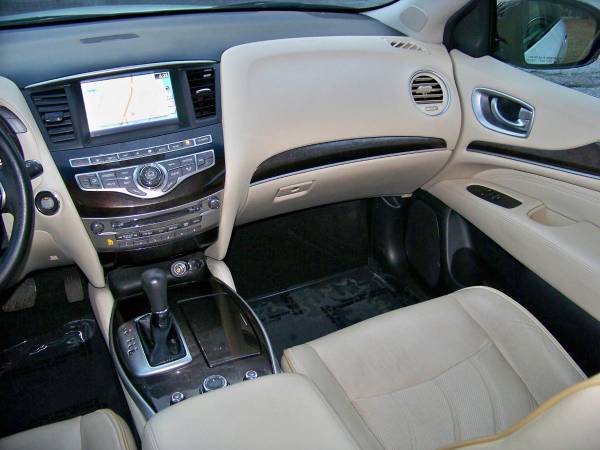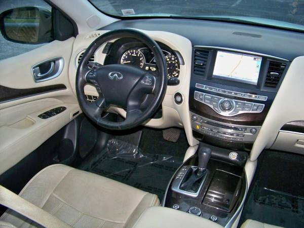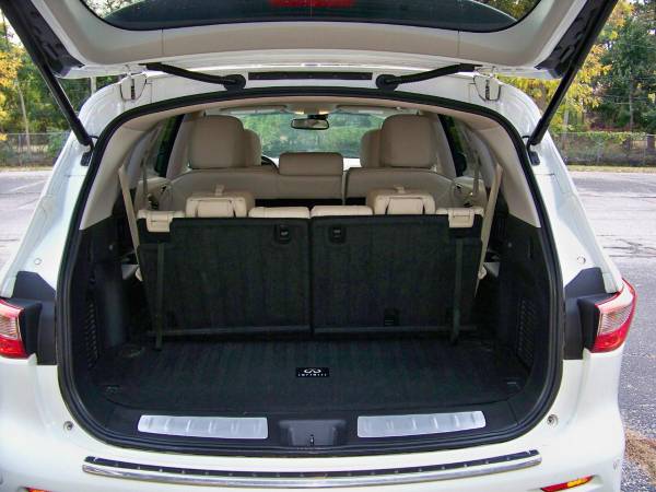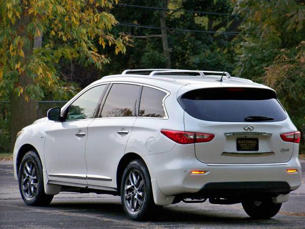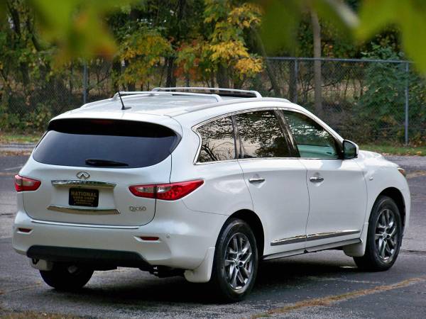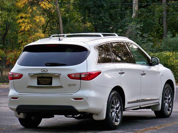 Hop into this stylish 2015 Infiniti QX60 and experience luxury like never before! This sleek white SUV is not just a beauty on the outside, but is packed with safety features like Child Safety Door Locks and multiple airbags for your peace of mind. Whether you're cruising through the city or tackling rough terrain with the 4WD/AWD capability, you'll always feel secure with ABS Brakes and Traction Control. The interior boasts comfortable leather seats with power adjustments, while the telematics system keeps you connected on the go. Enjoy the sun shining through the power sunroof as you listen to your favorite tunes on the AM/FM radio. With automatic headlights and fog lights for enhanced visibility, you'll be turning heads wherever you go. Don't miss out on this incredible deal - come test drive this Infiniti QX60 today and experience driving in luxury! Visit National Used Cars Inc online at www.usedcars12.com to see more pictures of this vehicle or call us at 216-692-1311 today to schedule your test drive.