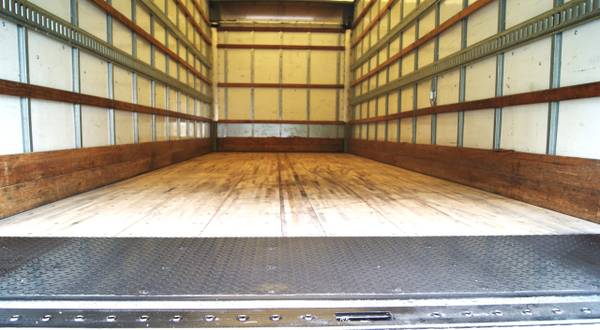 Equipped to haul plenty of cargo, this truck can handle up to 25,999lb GVWR (NO CDL REQUIRED). It is equipped with a 26’ Supreme Box that is 102” Wide X 103” Tall. It is equipped with a Waltco 3000lb Self Leveling Liftgate with an Aluminum Platform that measures 80” wide X 60”. It comes equipped with 2 – Rows Etrack, 4 Rows of wood tie down slats, and 2 – LED Lights