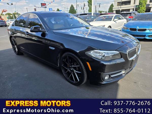 Step into luxury and power with this sleek black 2015 BMW 5 Series. The 3.0L DOHC 24V I6 engine with TwinPower Turbo technology delivers an exhilarating driving experience while ensuring efficiency with features like auto start-stop. The full-time all-wheel drive provides stability and control on any road. Admire the clearcoat paint and chrome accents as you cruise with style.Enjoy the convenience of the express open/close sunroof, rain-sensing wipers, and adaptive headlights that illuminate your path. Inside, the cabin features a premium audio system, Bluetooth connectivity, and real-time traffic display for a seamless driving experience. The integrated navigation system and smart device integration keep you connected on the go.Relax in the comfort of power-adjustable heated seats and dual-zone climate control. The memory settings, leather trim, and ambient lighting create an upscale ambiance. Safety is paramount with features like dual front airbags, side curtain airbags, and a tire pressure monitoring system.This BMW 5 Series comes with a Carfax report, giving you peace of mind on its history and performance. Experience luxury and performance in one package with this impressive BMW sedan. Visit Express Motors online at www.expressmotorsohio.com to see more pictures of this vehicle or call us at (937)776-2676 today to schedule your test drive.