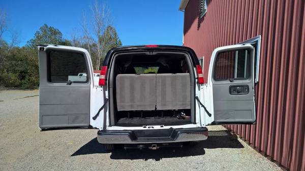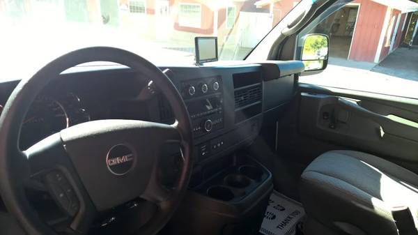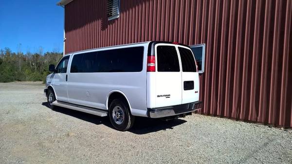 Up for sale is a 2013 GMC Savana 3500 LT Extended 15 Passenger Van. This van is powered by a 6.0L V8 engine and has 93,824 miles on it. RWD. This van comes with: Power Windows, Locks and Mirrors(Heated), Cruise Control, Automatic Headlights, Tilt Steering, AC 120 V Outlet, 12V Outlets, AM/FM Radio with CD Player and Auxiliary Jack, Remote Keyless Entry, Power Driver Seat, Cloth Seats and Carpeted Flooring, Rear Window Defrost, Solar-Ray deep-tinted Glass and Backup Camera. Tow Package with Brake Controller. Full Length Running Boards. 3.42 Ratio Locking Rear Diff. Removeable Garmin GPS included. Interior Color is Medium Pewter. Exterior Color is Summit White.