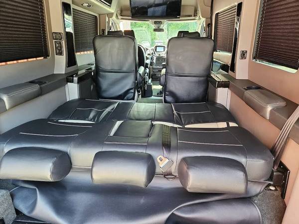 Up For Sale is a 2016 Ford Transit 250 7 Passenger Sherrod Custom Van. This van is powered by a 3.5L EcoBoost V6 Gas Engine and has 96,182 miles on it. This van is a Medium Roof. This van has 148" Wheelbase. This van comes with: Power Windows, Locks and Heated Mirrors, 12V outlets front and rear, Key-less Entry, Remote Start, Cruise Control, SYNC 3 with Navigation, AM/FM Radio, USB Ports, Bluetooth, Privacy Glass, Lane Keep Alert, Backup Camera, Reverse Park Aid and Trailer Tow Package with Trailer Brake Controller. Dual Heavy Duty Batteries. Heavy Duty Alternator. Sliding Side Door. Running Boards. SHERROD Custom Package includes: All Power seats - 6 way middle power with swivel bases, Dual power recline rear sofa, Overhead storage, Pleated Privacy Shades, Removeable Rear Tables, 32" LED High DEF T.V. with Digital Optical Disc Player and Wireless Headphones, Game Control Center, WIFI Router, Premium Speaker Package and Individual LED Reading Lights. Added Black Seat Covers. From Texas. Rust Free.