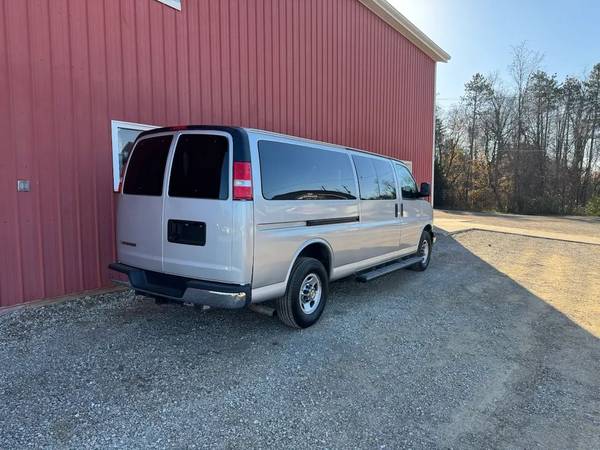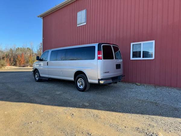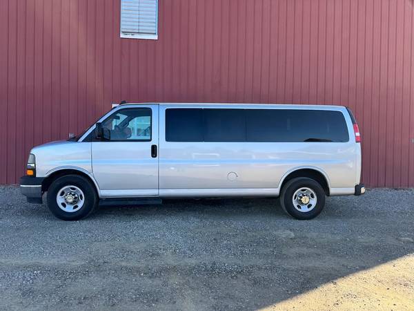 Up for sale is a 2020 Chevrolet Express 3500 LT Extended 15 Passenger Van. This van is powered by a 6.0L Vortec V8 engine and has 101,705 miles on it. RWD. This van comes with: Power Windows, Locks and Mirrors(Heated), Cruise Control, Automatic Headlights, Tilt Steering, AC 120 V Outlet, 12V Outlets, AM/FM Radio with Auxiliary Jack, Remote Keyless Entry, Power Driver Seat, Cloth Seats and Carpeted Flooring, Deep-tinted Glass, Forward Collision Alert, Lane Departure Warning, Rear Window Defrost, Backup Camera, Tow Package and Running Boards. Sliding Door. 3.42 Ratio Rear Axle. Locking Rear Differential. Interior Color is Medium Pewter. Exterior Color is Silver Ice Metallic.