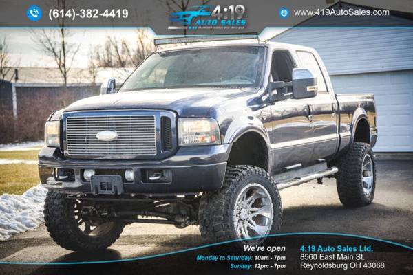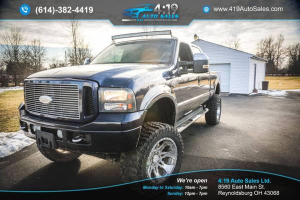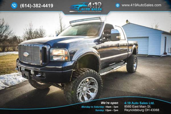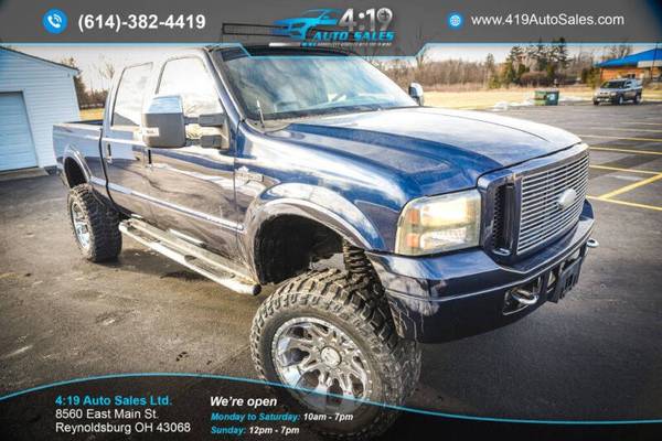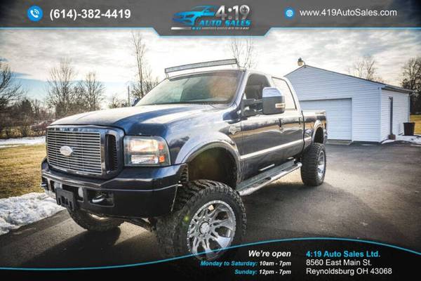 2005 FORD F250 SUPER DUTY HARLEY DAVIDSON 4X4 CREW CAB 6.8 LITER V10 ENGINE 98,000 MILES RUNS GREAT AUTOMATIC POWER WINDOWS POWER LOCKS HEATED/MEMORY/POWER SEATS POWER MIRRORS TOW PACKAGE SOUND SYSTEM AUX INPUT SATELLITE RADIO HD RADIO BLUETOOTH ALLOY WHEELS NEW TIRES SUPER CLEAN BLUE WITH BLACK LEATHER INTERIOR THIS TRUCK RIDES AND DRIVES OUT GREAT CARFAX HISTORY REPORT AVAILABLE FOR YOUR REVIEW $19,995 CASH SPECIAL OR $1000 DOWN 45 DAYS UNTIL FIRST PAYMENT IS DUE 3 WAYS TO BUY CARS FROM US 1. CASH SPECIALS (IF YOU HAVE A STASH OF CASH COME FLASH THE CASH AND MAKE A BUY IT NOW OFFER!!!)...2. BANK FINANCING WITH CREDIT BASED LENDER APPROVAL WE HAVE PRIME AND SUBPRIME LENDERS...3. PREMIUM BUY HERE PAY HERE ($6000 DOWN PAYMENT $600 PER MONTH FOR 36 MONTHS COMES WITH 48 MONTH 48,000 MILE WARRANTY) LOWER MONTHLY PAYMENT AVAILABLE WITH ADDITIONAL DOWN PAYMENT WE WILL DO OUR BEST TO WORK IT OUT WITH YOU!!! WE MAKE IT HAPPEN FOR YOU!!! CALL 4:19 AUTO SALES AT 614-382-4419 OR COME AND VISIT US AT 8560 E. MAIN ST. REYNOLDSBURG OH 43068 OPEN MONDAY TO SATURDAY 10 TO 7 AND SUNDAY 12 TO 5 WE ACCEPT CASH, ZELLE, CASH APP, CRYPTO CURRENCY AND ALL MAJOR CREDIT AND DEBIT CARDS WE CHARGE A SURCHARGE OF 7% OF THE TOTAL AMOUNT CHARGED ON THE CARD FOR AMERICAN EXPRESS AND DISCOVER CARD AND 3.5% FOR VISA AND MASTERCARD THANKS FOR LOOKING!!! FREE TREES FLASHLIGHT AND CHAMP PHOTO WITH EVERY CAR!!!