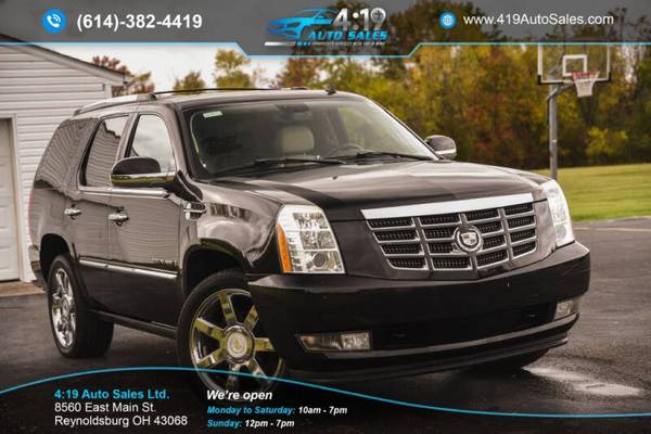 2008 CADILLAC ESCALADE ALL WHEEL DRIVE ENGINE 189,000 MILES RUNS GREAT AUTOMATIC POWER LOCKS POWER WINDOWS POWER SEASTS POWER SUNROOF BACKUP CAMERA NAVIGATION BOSE SOUND SYSTEM TV/DVD REAR ENTERTAINMENT SYSTEM THIRD ROW SEATING CRUISE CONTROL CD PLAYER WITH AUX INPUT AND SATELLITE RADIO ALLOY WHEELS SUPER CLEAN BLACK WITH TAN LEATHER INTERIOR THIS SUV RIDES AND DRIVES OUT STRONG CARFAX HISTORY REPORT WHICH IS AVAILABLE FOR YOUR REVIEW $7995 CASH SPECIAL OR $1000 DOWN 45 DAYS UNTIL FIRST PAYMENT IS DUE 3 WAYS TO BUY CARS FROM US 1. CASH SPECIALS (IF YOU HAVE A STASH OF CASH COME FLASH THE CASH AND MAKE A BUY IT NOW OFFER!!!)...2. BANK FINANCING WITH CREDIT BASED LENDER APPROVAL WE HAVE PRIME AND SUBPRIME LENDERS...3. PREMIUM BUY HERE PAY HERE ($2500 DOWN PAYMENT WE MAKE IT HAPPEN FOR YOU!!! CALL 4:19 AUTO SALES AT 614-382-4419 OR COME AND VISIT US AT 8560 E. MAIN ST. REYNOLDSBURG OH 43068 OPEN MONDAY TO SATURDAY 10 TO 7 AND SUNDAY 12 TO 5 WE ACCEPT CASH, ZELLE, CASH APP, CRYPTO CURRENCY AND ALL MAJOR CREDIT AND DEBIT CARDS WE CHARGE A SURCHARGE OF 7% OF THE TOTAL AMOUNT CHARGED ON THE CARD FOR AMERICAN EXPRESS AND DISCOVER CARD AND 3.5% FOR VISA AND MASTERCARD THANKS FOR LOOKING!!! FREE TREES FLASHLIGHT AND CHAMP PHOTO WITH EVERY CAR!!!