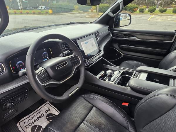 Electronic Stability Control HillStart Assist Tire Pressure Monitoring Display Security Alarm PowerAdjustable Pedals with Memory Sentry Key TheftDeterrent System RainSensitive Windshield Wipers INTERIOR FEATURES Uconnect 5 Nav with 10.1Inch Touch Screen Display 10.25Inch Cluster Display Apple CarPlay Google Android Auto 4G LTE WiFi Hot Spot with Trial Included GPS Navigation SiriusXM 360L with 6Month Sub Wagoneer Connect (Connected Services) with Trial Alpine 9Speaker System with Subwoofer Wireless ChargingPad Air Conditioning with 3Zone Automatic Temp Control Heated Steering Wheel Heated Front Seats Ventilated Front Seats