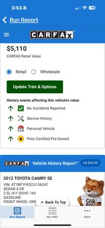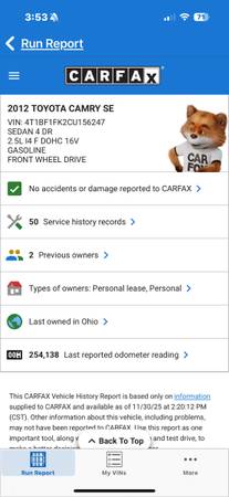 12 TOYOTA CAMRY SE SPORT! NEW PRICE! Nearly perfect condition. Good CARFAX!