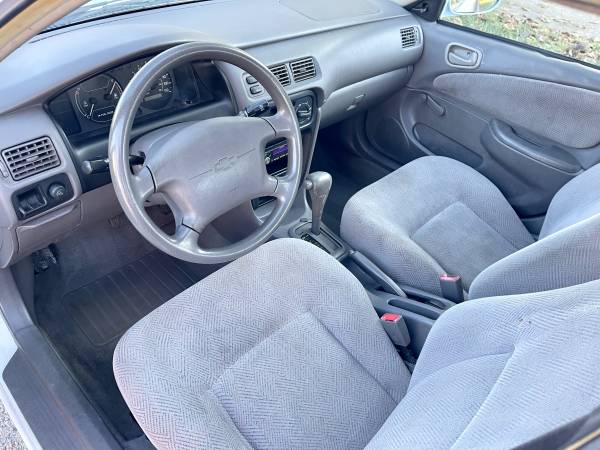 1999 Chevrolet Prizm (same as a Toyota Corolla) 1.8L automatic transmission with 114k actual miles!. Fresh tune up (plugs/wires), new front brakes (pads/rotors), new valve cover gasket, new tires, new door handles (all work). Everything works inside including heat and A/C. Cheap, low mileage car that gets great gas mileage and has LOTS of life left.
