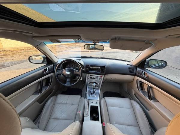 2006 Subaru Legacy limited AWD automatic transmission 87K miles 2.5L engine 20mpg city 27mpg highway. Good mechanical condition. Runs and drives great without any known issues . Fully loaded with all power windows, locks, mirrors, leather heated seats, sunroof, alarm , cruise control, traction control, ABS, SRS, CD player with aux , cold Ac, hot heat, alloy wheels etc.. everything works as it should . Car has new battery, newer brakes and tires , fresh oil change. Exterior is rust free , interior doesn’t have any rips or tears . There are no warning lights on dash . Car has clean Oh title . Excellent car for new driver . Very low miles for age . Safe and reliable. Great on snow . All wheel drive . Price is firm . Only serious buyers contact me .