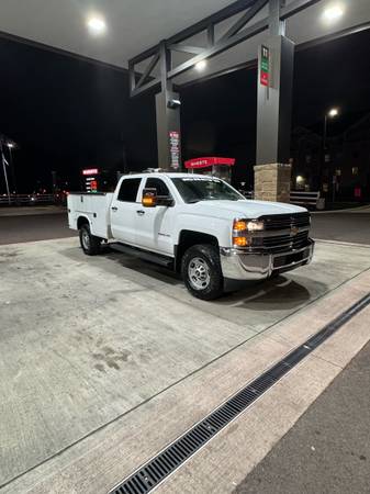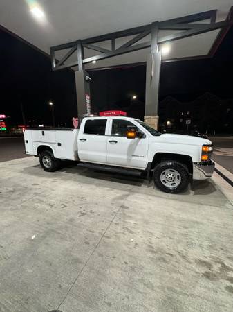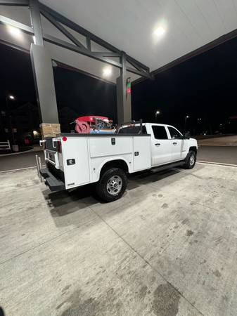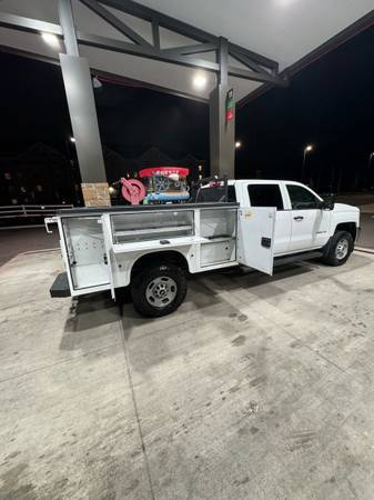 2017 four-door Chevy Silverado, 2500 HD 6.0 L, V8 four-wheel-drive 4 x 4 works good. The utility bed is in great shape. The truck runs and drives absolutely perfect no mechanical problems at all no warning lights you could turn the key and drive this truck anywhere it's extremely clean presentable and reliable. It has power windows power locks, tilt cruise control, back up camera, Bluetooth radio electric seats plus a lot more options AC and heat works good. It has good tires. The compressor and everything that's in the bed works full synthetic mobile one oil change every 4000 miles. The engine and transmission has been completely overhaul 38,000 miles ago.