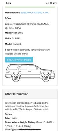 Subaru Outback Limited 2.5i Leather seats Power seats Goodyear tires 80,000 mile warranty, 53,000 miles remaining Mechanically perfect shape