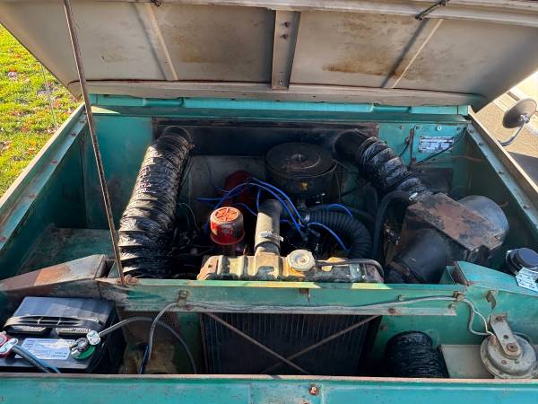 Rust-free frame and floor boards, sat in the desert in California. Carburetor, fuel pump, generator professionally rebuilt. All fluids, filters, and seals in drive train replaced. New plugs, wires, points, and cap. Front disc brake swap and new master cylinder (have original drum brakes). All wheel drive works as it’s designed. New tires. Jeep roll bar. I have the top and doors in storage. Pushed on a car hauler June 2024 and driving it today. Clear Ohio title in my name.