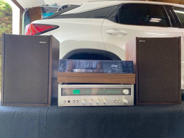 Here is a complete OEM Bose 360 Stereo system. It’s complete with a receiver, turntable and speakers.
