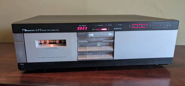 Up for sale is a classic Nakmichi three head cassette deck. The LX-5 features a dual capstan transport and three heads (separate playback, record and erase heads), as well as Dolby B and C noise reduction.