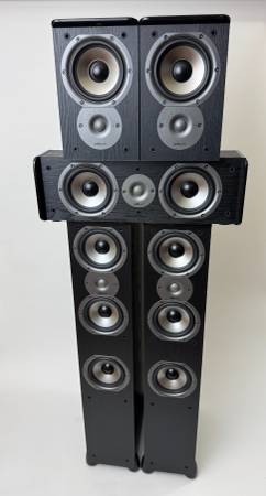 For sale is an affordable yet incredibly sounding speaker package for anyone looking to get started or even upgrade an existing home theater system. Everything is in good condition and works as it should. The package consists of: