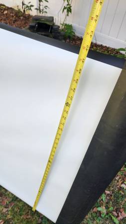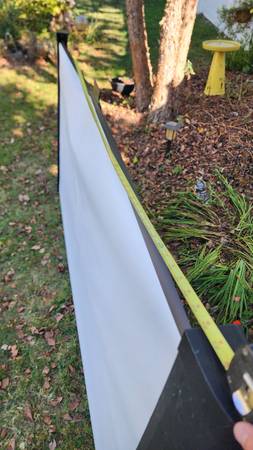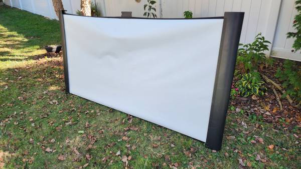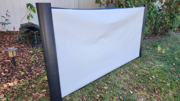 Great working screen Expands to 80 inches Steak into ground to hold up Or buy tripod stand to use it up higher