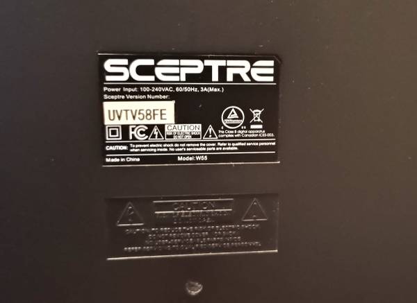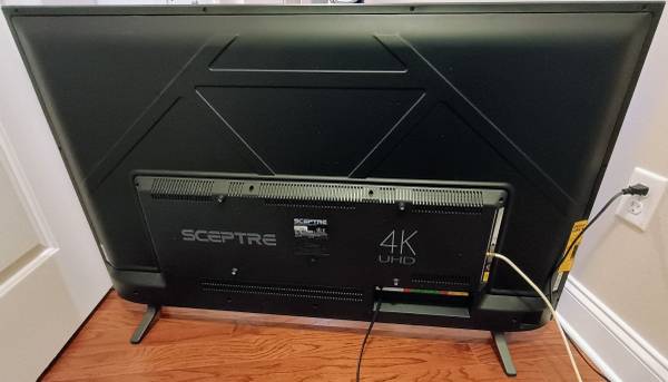 Sceptre 55" 4K UHD TV. Tested, working. Original remote is missing. Will come with a compatible Sony remote. Note that the TV has some backlight bleed/uneven backlight (see pictures), but this does not affect the picture quality to any significant degree.