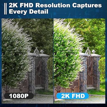 The outdoor camera wireless features 2304 x 1296 pixels that's 4 times better than 1080P, which provide a wide viewing angle, 2k high-definition live video and image. The outside camera has two modes of night vision, full color and infrared night vision with a 33ft visible range, it will offer a clear wide video of any area you wish to monitor even at night. With the Mobile app, the system’s live or recorded video can be accessed from anywhere at any time.