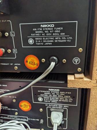 Vintage NIKKO NA-850 amplifier, with NIKKO NT-850 Stereo Tuner. Both are in a custom built hardwood cabinet. Terrific sound.