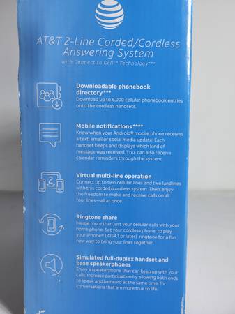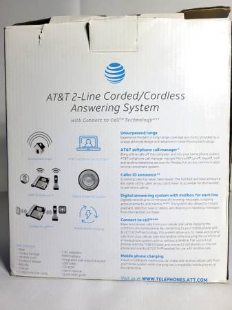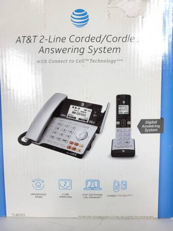 Never used AT&T 2 Line Corded/Cordless Phones Answering System TL86103