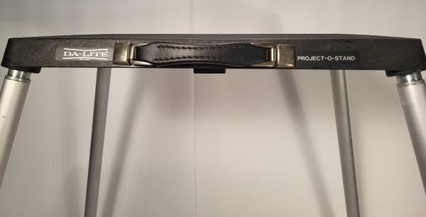 Nice fully functional pre-owned DA-LITE PROJECT-O-STAND Movie Projector Table. Portable and adjustable from 31"H to 57"H. Table top 19 1/4 x 11 3/4". No model number on it.