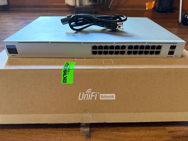 This listing is for a lightly used Ubiquiti UniFi USW Pro 24 Layer 3 Switch (USW-Pro-24) in like new condition. This switch was purchased new one year ago from Microcenter and used for a year in a home lab environment that did not get much usage. This is a layer 3 switch and requires a UniFi controller to manage. Comes with the original box from purchase, power cable, rack mount ears, and screws.