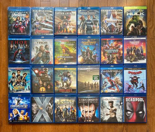 24 MARVEL Movies on Blu-Ray! Great Condition! 4 of them are Brand New! Located on High St in Clintonville. Shipping is also available. Call Brian at to purchase. Thanks