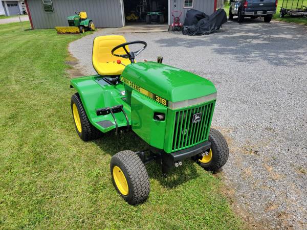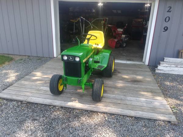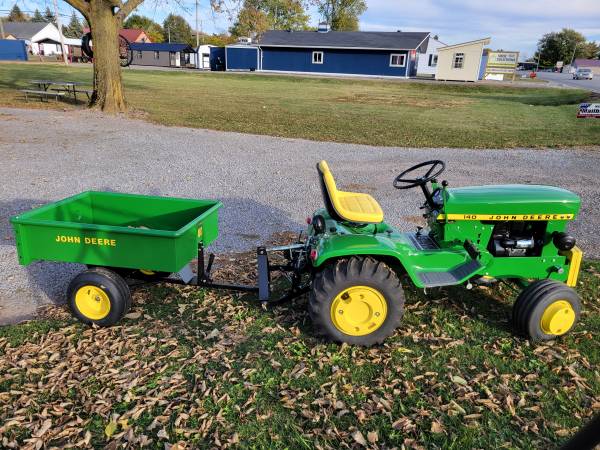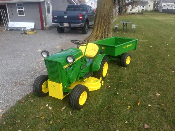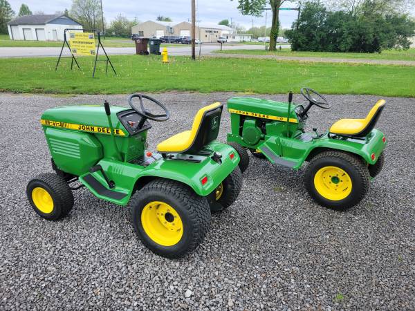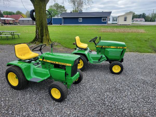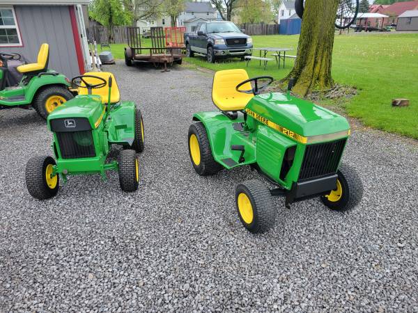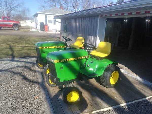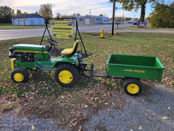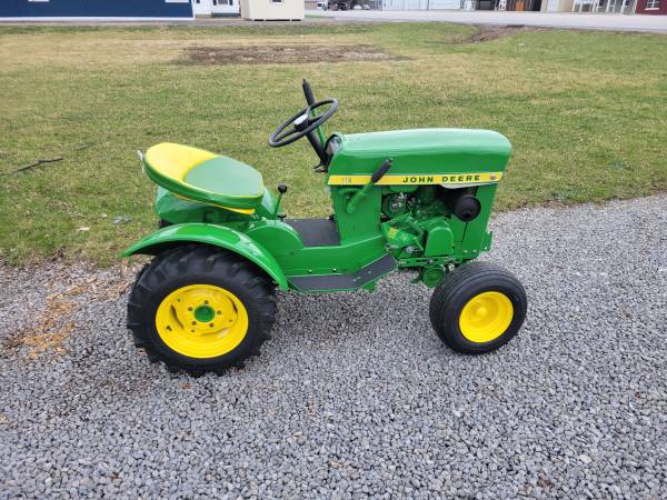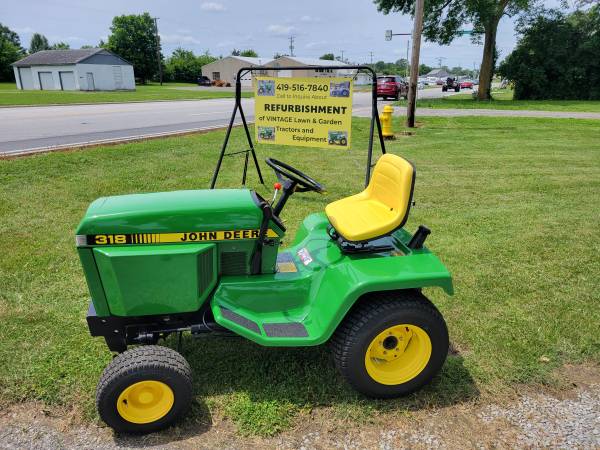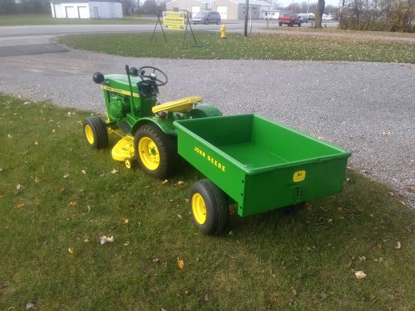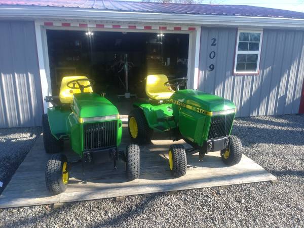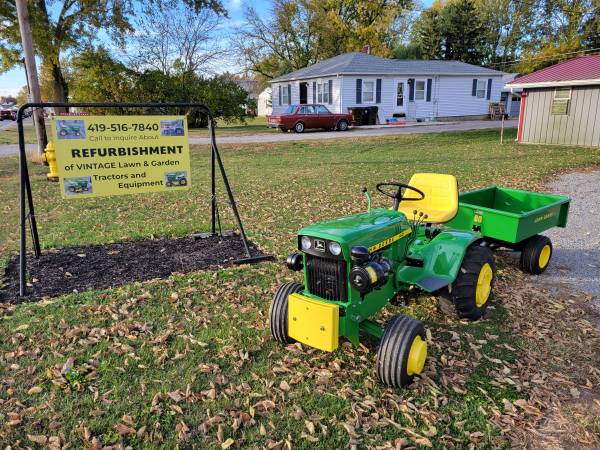I provide refurbishment of vintage John Deere Lawn Mowers and Garden Tractors - such as John Deere 110, 112, 120, 140, 200 series, 300, 312, 314, 316, 317, 318, and 400 models. I am receptive to working on other brands of vintage equipment also. The photos attached are of a 1974 JD 140 with Model 80 dump cart, a 1988 JD 318, a 1969 JD 110 with a 1980 JD 212, and a 1965 JD 110 recently completed, along with a Cub Cadet 129, a 1967 JD 110 with a Model 80 cart, a pair of 1979 JD 317's, and a 1969 JD 140 completed over the past several months. Refurbishing includes any mechanical, electrical, or engine repairs required, sandblasting as needed, and repainting with genuine John Deere paints. I charge my costs for parts, paint, and supplies and $65 per hour for labor to restore these vintage tractors. Pick-up and delivery are available. I can also work with you to help acquire a vintage item to restore if you don't already possess one. Please click on 'reply' above for contact information to discuss what you might be interested in having some restoration work done on. I am located in Elida OH.