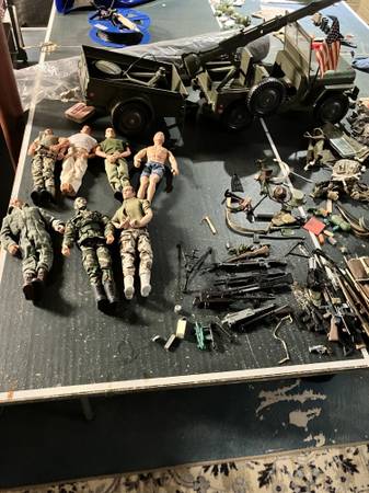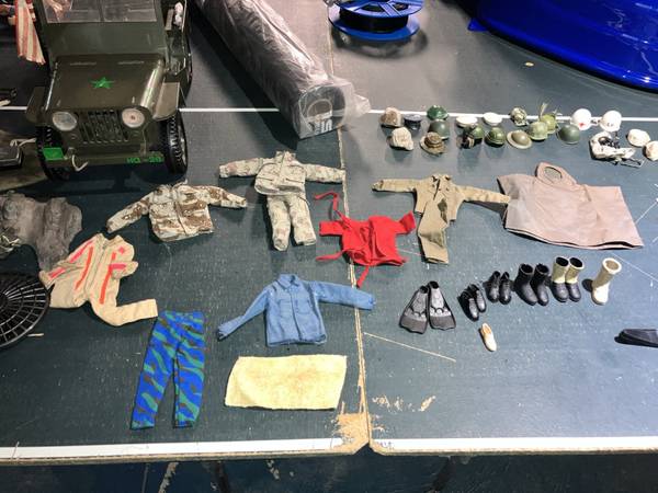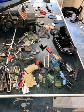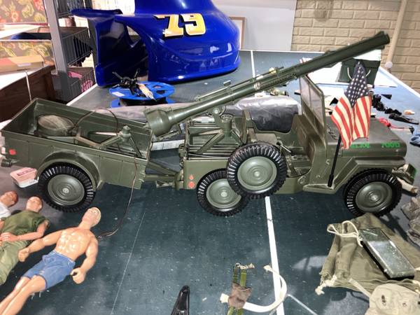 Original GI Joe Jeep and Trailer ( with light and rocker launcher ) , numerous original accessories ( see pics ). The action figures are newer and not from the 60's.