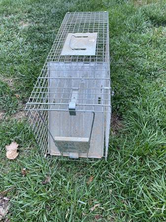Used animal trap in good condition. Good for trapping skunks, racoons, groundhogs, etc. Type: Live animal trap (catch-and-release) • Material: Rust-resistant galvanized steel • Mechanism:...