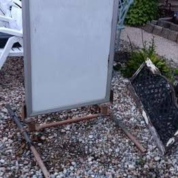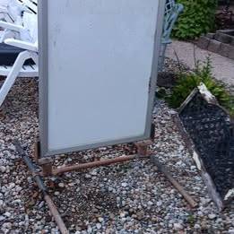 This is a good used whiteboard that is complete and functions as it should. it is 2 feet wide and 4 feet tall call or text