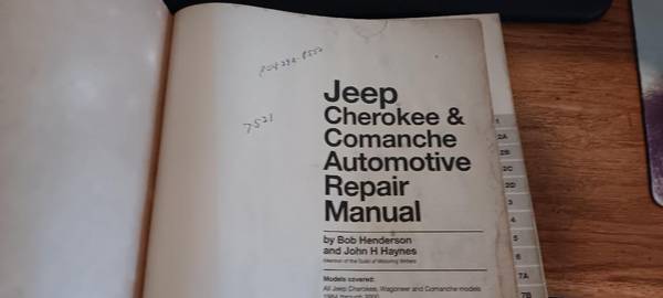 This is a good used manual that does show signs of use and wear but it is complete. It is for Cherokee Wagoneer and Comanche Call or text