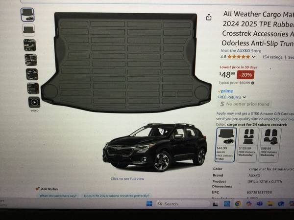 Pickup on Aigen Ave. Cash only Will also ship. All Weather Cargo Mat Fit for Subaru Crosstrek 2024 2025 TPE Rubber Cargo Liner Set Crosstrek Accessories All Season Guard Odorless Anti-Slip Trunk...