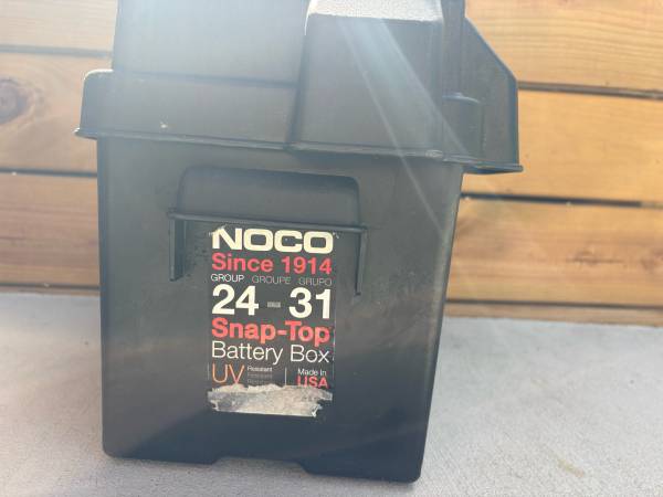 Outdoor Marine RV Battery Box GROUP 24 - 31 Snap-Top Battery Box UV Resistant Made In USA $8.00 Cash Text me and I will set up a good time to meet you right away. Thanks , Neal